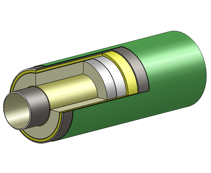 特点:主要针对管道直埋敷设过河、水位高于管位敷设环境或在水中敷设设计的、采用钢套钢基本形式但对午夜免费黄片层进行独立密封处理的预制直埋蒸汽午夜免费黄片管。